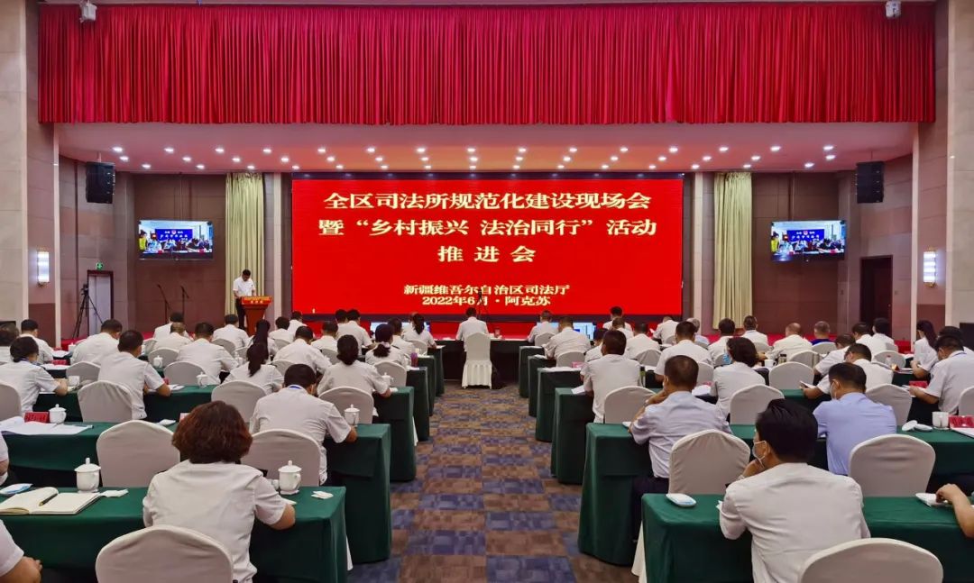 新疆平安網訊 6月27日,新疆司法廳在阿克蘇地區召開全區司法所規范化建設現場會暨“鄉村振興 法治同行”活動推進會,安排部署加強新時代司法所規范化建設工作,持續深入推進“鄉村振興 法治同行”活動重點任務落實,著力夯實依法治疆基礎,為法治鄉村建設和鄉村振興提供法律服務和法治保障。