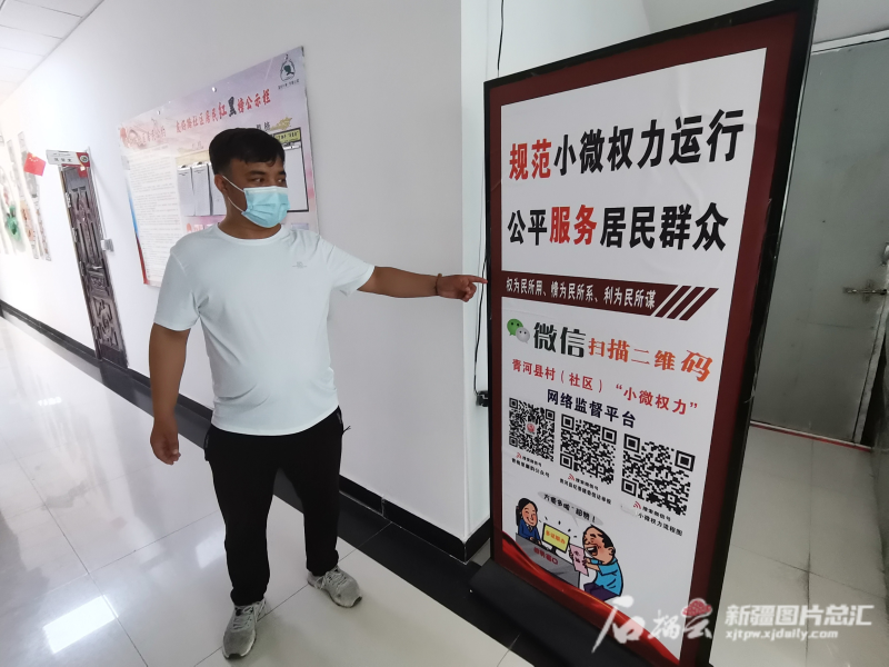 “規范小微權力運行,公平服務居民群眾。”6月24日,記者來到青河縣塔克什肯鎮友好路社區,首先映入眼簾的是一樓門廳的青河縣村(社區)“小微權力”監督平臺的宣傳板。