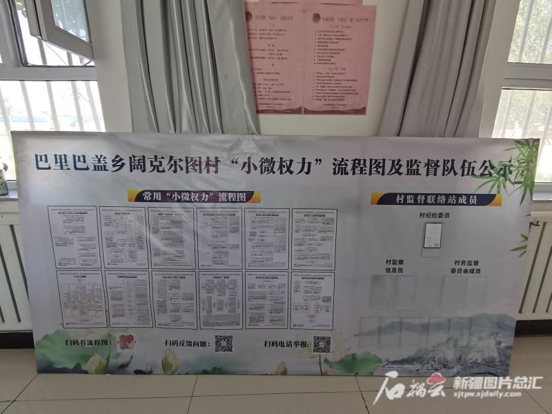 大門外有社區常用的“小微權力”流程圖和監督力量公示欄,樓梯間墻壁打造成廉潔宣傳墻,在阿勒泰地區多個縣市采訪期間,類似場景出現在記者到過的每一個鄉鎮及村(社區)。