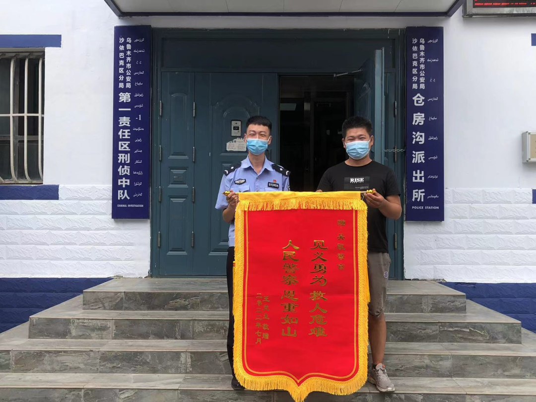 7月20日,烏魯木齊市公安局沙依巴克區分局倉房溝派出所春和警務區內,居民王先生為民警送上一面錦旗表達感謝!