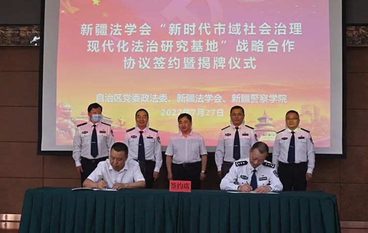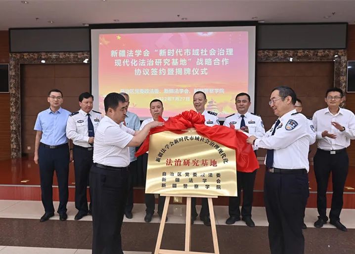 7月27日,新疆法學(xué)會(huì)新時(shí)代市域社會(huì)治理現(xiàn)代化法治研究基地揭牌儀式在新疆警察學(xué)院舉行,自治區(qū)黨委政法委、新疆法學(xué)會(huì)與新疆警察學(xué)院簽訂了戰(zhàn)略合作協(xié)議。自治區(qū)黨委政法委常務(wù)副書(shū)記,新疆法學(xué)會(huì)黨組書(shū)記、副會(huì)長(zhǎng)竇朝暉出席活動(dòng)并講話。