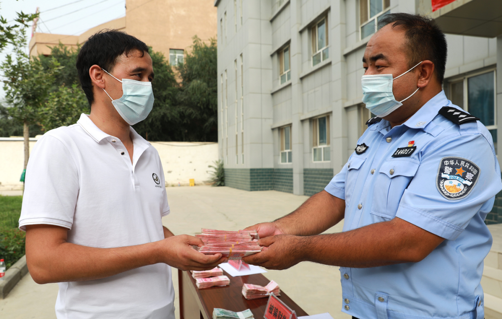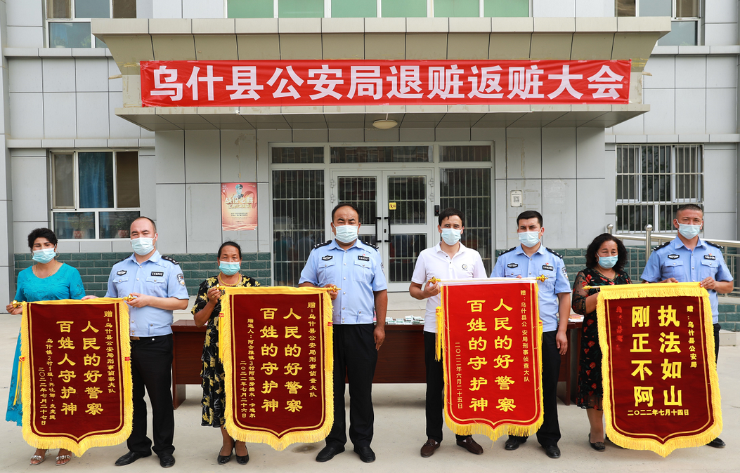 “真沒想到被偷的物品這么快就能找回來,感謝烏什縣公安局的民輔警,讓我們感受到了速度和真心。今天我帶來了錦旗,表達對你們的感謝,謝謝你們替我們挽回損失,你們真是人民的好警察!”受害群眾阿某拿著返還給自己的錢物,激動地說道。
