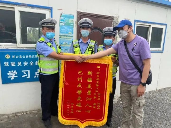 8月7日,巴音郭楞蒙古自治州輪臺(tái)縣公安局交警大隊(duì)民警收到一面來(lái)自北京游客贈(zèng)送的錦旗,對(duì)輪臺(tái)交警的及時(shí)救助表示由衷感謝。