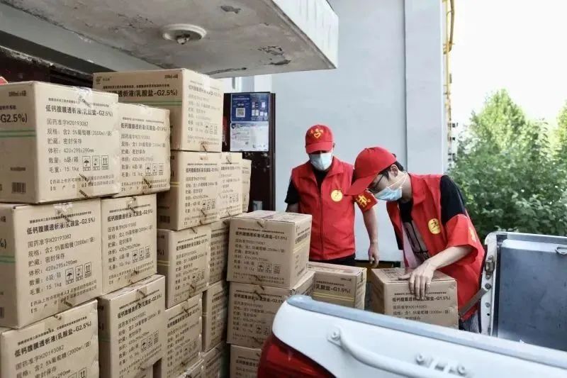 干警與社區(qū)干部共同聯(lián)系醫(yī)院及車輛,8月8日中午,志愿者們將透析藥品外包裝進(jìn)行消殺后,一箱箱搬運(yùn)至居民家中及地下室儲(chǔ)存。“藥備齊了,這下不愁了,謝謝你們。”(佳娜提)