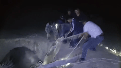接警后,民警立即趕往事發(fā)地。民警和牧民嘗試?yán)美K索對(duì)駱駝進(jìn)行救援,但因駱駝體型較大、坑地較深,救援工作一度陷入困境。經(jīng)再三嘗試,兩個(gè)多小時(shí)后,駱駝被大家一點(diǎn)點(diǎn)拉了上來(lái)。(平安瑪納斯)