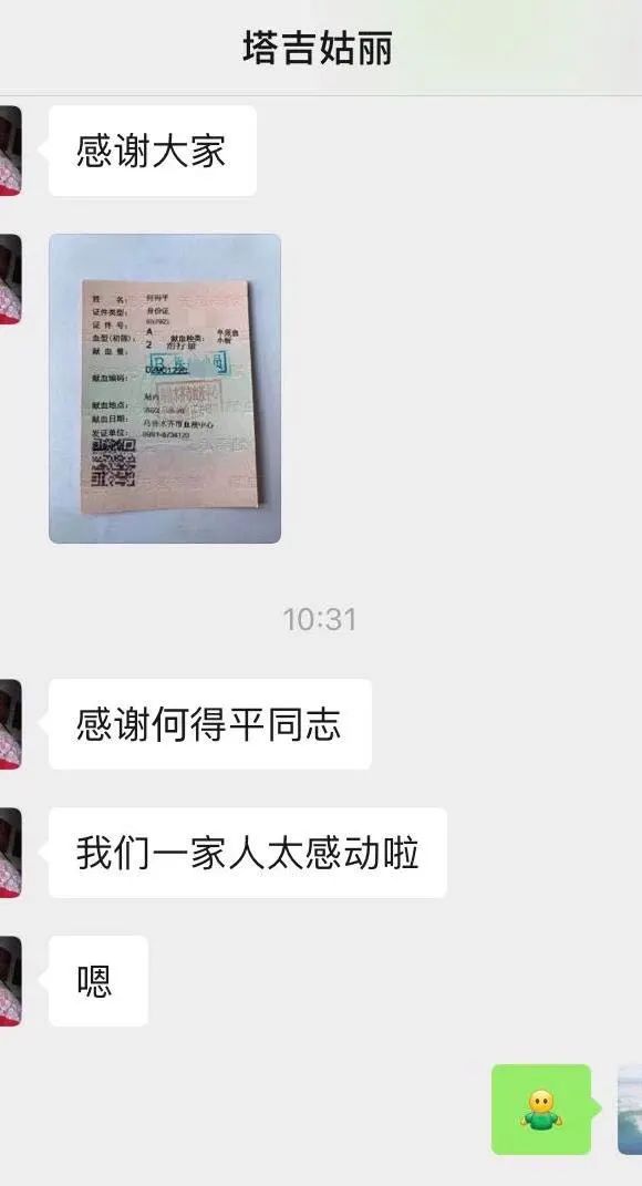 “機(jī)關(guān)A型血的干部看到征集信息,都毫不猶豫地報(bào)了名。我身處其中,真的特別感動。雖然我沒見過小穆,但艾日克貝西村的每個(gè)群眾都是我們政法干部的親戚,親戚有困難怎么可能視而不見?何況是個(gè)身患重疾的孩子!”周民說,雖然他沒能獻(xiàn)成血小板,但是他隨時(shí)候命,只要孩子需要,他會義無反顧沖在前面。