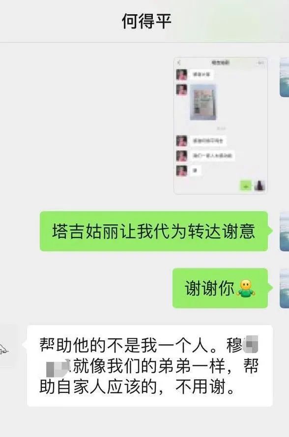 何得平回復(fù)說:“小穆就像我們的弟弟一樣,幫助自家人應(yīng)該的,不用謝。”