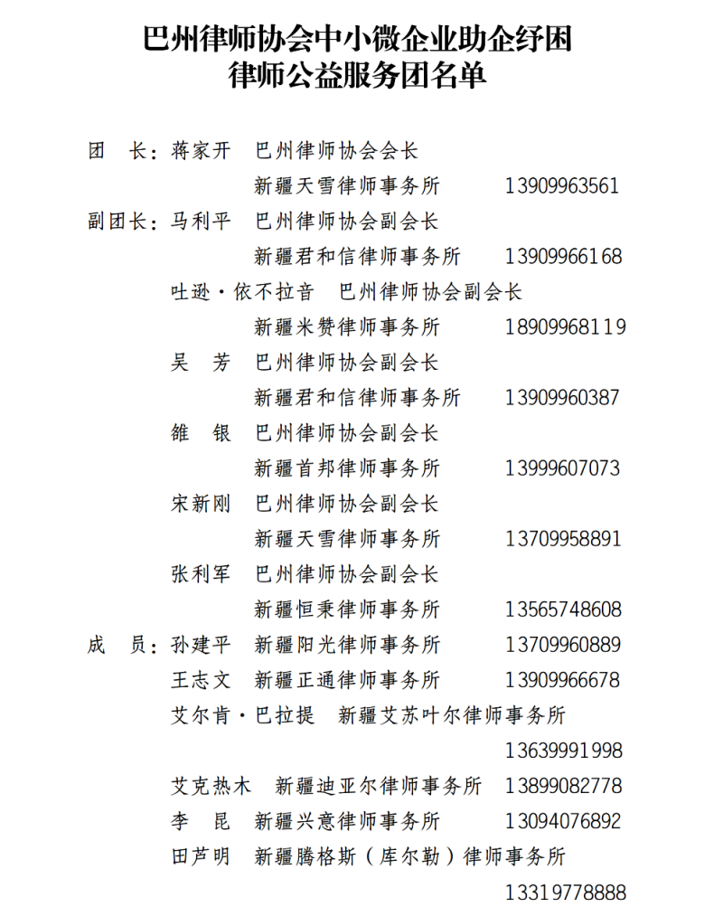 現(xiàn)將各地(州、市)律師協(xié)會中小微企業(yè)助企紓困律師公益服務(wù)團(tuán)公布如下: