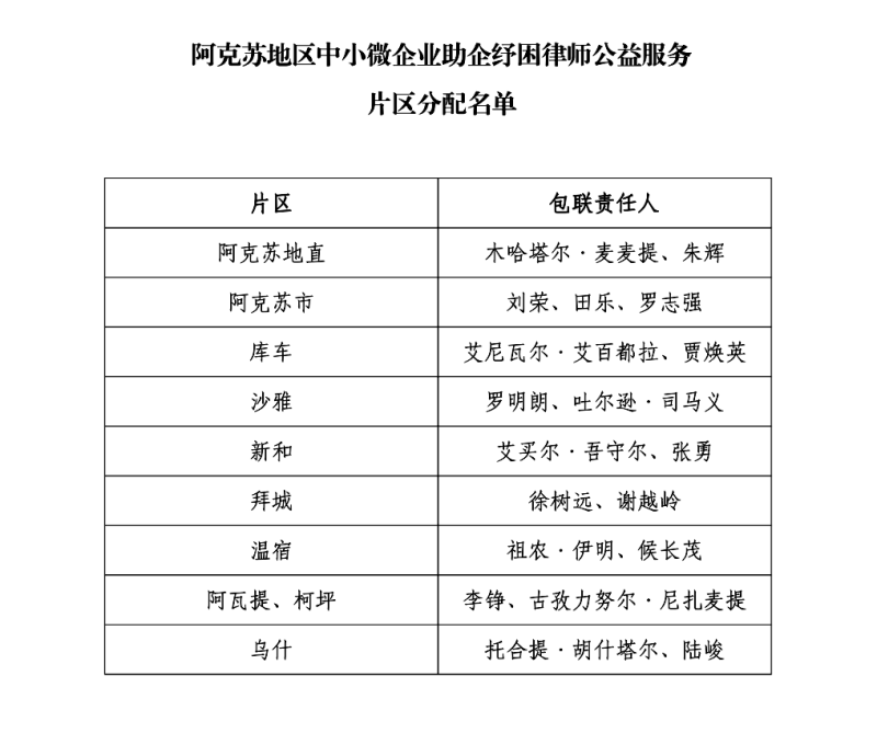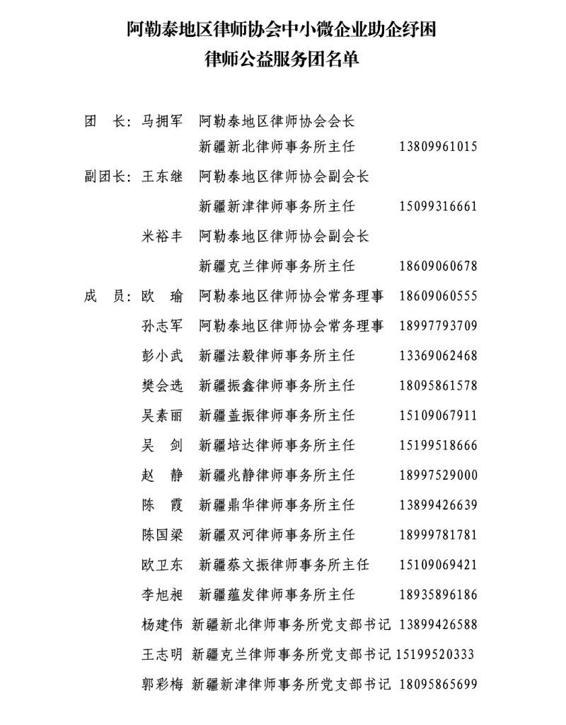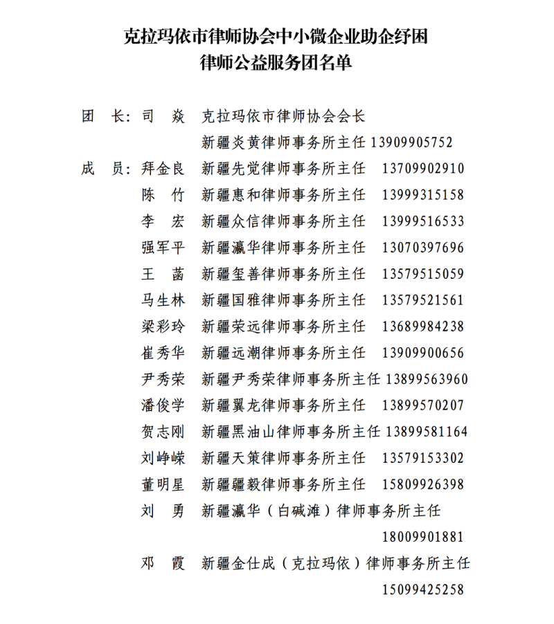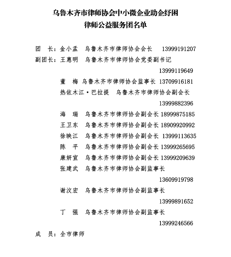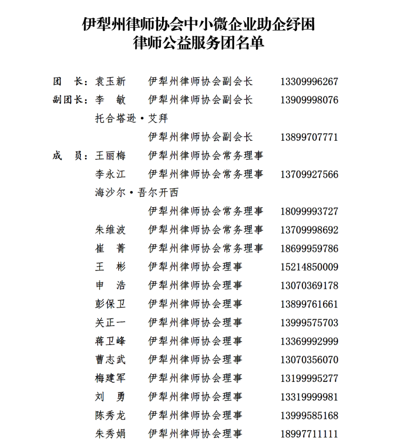 根據(jù)自治區(qū)人民政府辦公廳《關(guān)于進(jìn)一步加大對中小微企業(yè)和個體工商戶助企紓困力度若干政策措施的通知》要求和自治區(qū)司法廳黨委、新疆律師行業(yè)黨委工作安排,新疆律師協(xié)會于8月25日下發(fā)《關(guān)于成立中小微企業(yè)助企紓困律師公益服務(wù)團(tuán)的通知》,要求各地(州、市)律師協(xié)會加強(qiáng)組織領(lǐng)導(dǎo),周密安排。