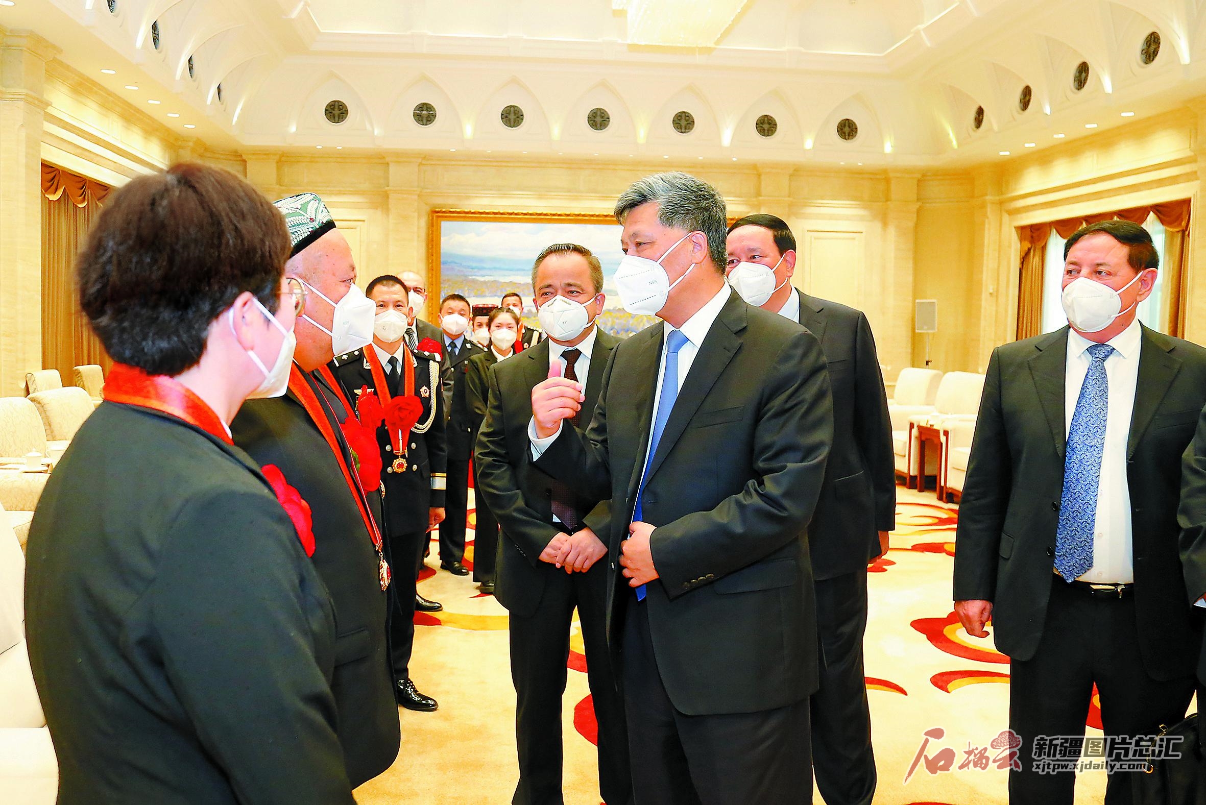9月2日,自治區黨委書記馬興瑞,自治區黨委副書記、自治區主席艾爾肯·吐尼亞孜在烏魯木齊會見載譽歸來的我區全國“人民滿意的公務員”和“人民滿意的公務員集體”代表,向受到表彰的先進集體和個人表示熱烈祝賀,向全區廣大公務員致以親切問候。石榴云/新疆日報記者謝龍 攝