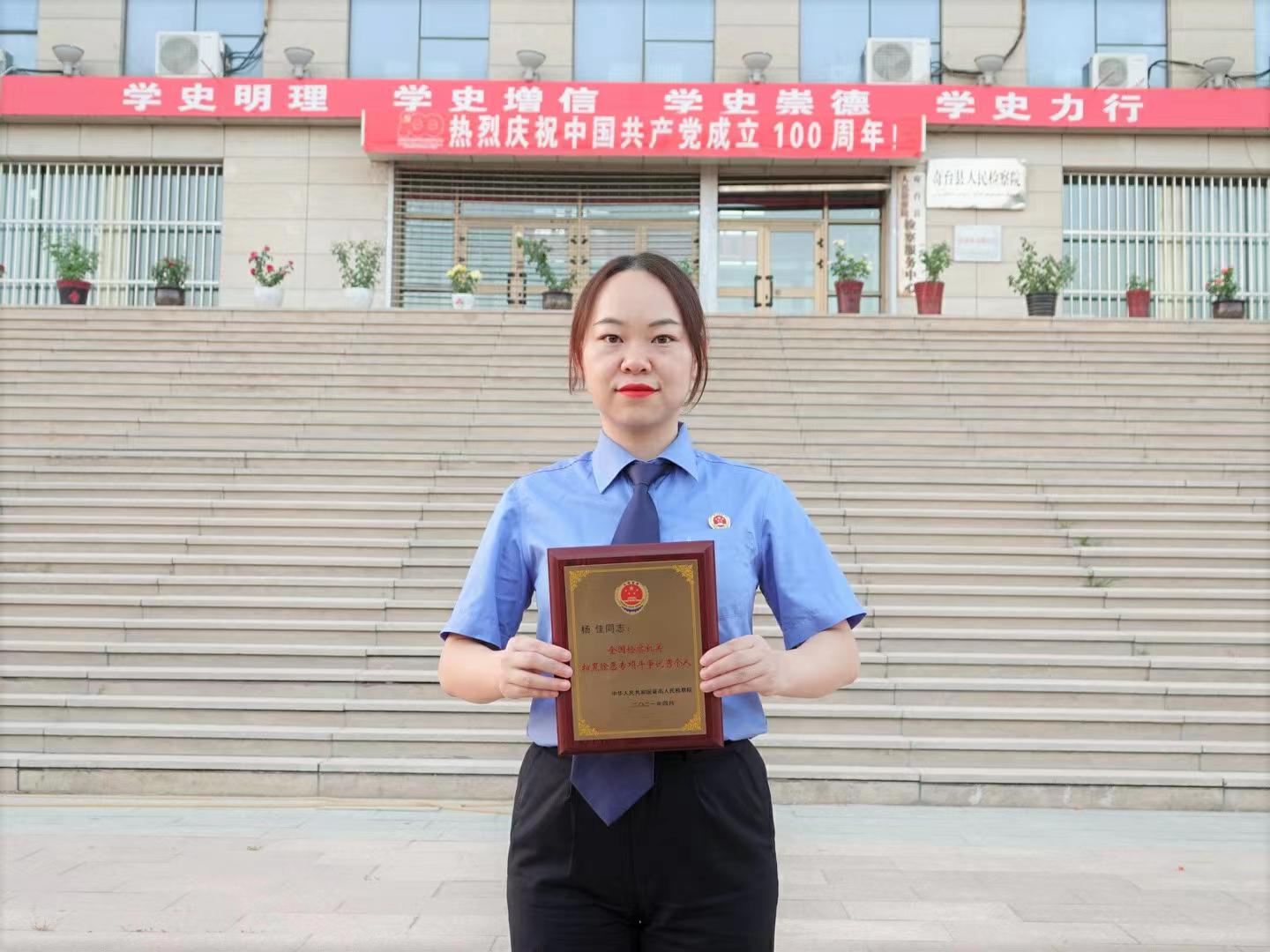 9年來,楊佳承辦各類案件600余件,她撰寫的法律文書多次被評選為昌吉州檢察機關優秀法律文書,其中多篇案例被自治區人民檢察院采納為典型案例、百佳案例,進一步推動了奇臺縣檢察機關刑事檢察工作的專業化、規范化建設。