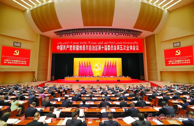 新疆平安網訊 中國共產黨新疆維吾爾自治區第十屆委員會第五次全體會議9日在烏魯木齊召開。會議主題是,堅持以習近平新時代中國特色社會主義思想為指導,全面貫徹黨的十九大和十九屆歷次全會精神,深入學習貫徹習近平總書記視察新疆重要講話重要指示精神,完整準確貫徹新時代黨的治疆方略,牢牢扭住社會穩定和長治久安總目標,堅持依法治疆、團結穩疆、文化潤疆、富民興疆、長期建疆,扎實推進事關長治久安的根本性、基礎性、長遠性工作,在新時代新征程上奮力建設團結和諧、繁榮富裕、文明進步、安居樂業、生態良好的美好新疆,以實際行動迎接黨的二十大勝利召開。