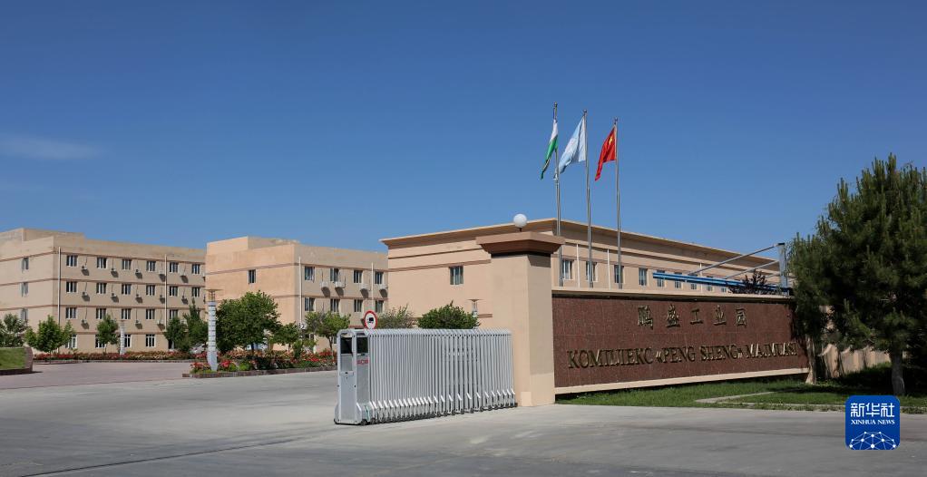 這是2018年5月8日拍攝的烏茲別克斯坦鵬盛工業園入口。鵬盛工業園是中國民營企業直接在烏投資建立的首個中烏合資工業園區。新華社記者 周良 攝