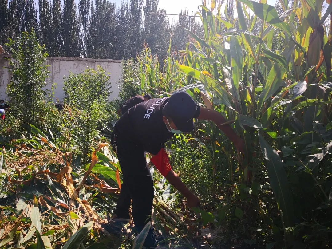 9月14日,烏什縣公安局阿合雅派出所尤喀克闊庫拉村警務室民警在入戶走訪時,發現路邊不遠處有位老人正在收玉米。民警上前詢問得知老人今年已76歲,子女均在外務工,無其他勞動力,眼看家里種植的玉米已到收割期,搶收玉米成了眼下最大的困難。