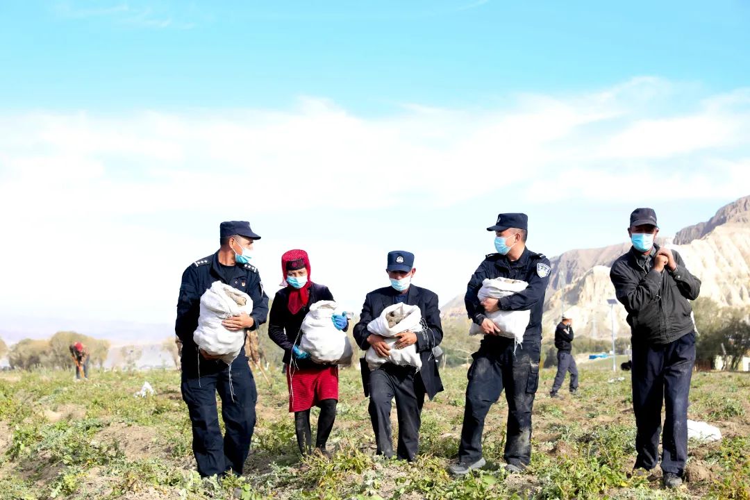 9月14日,新疆出入境邊防檢查總站喀什邊境管理支隊瓦恰邊境派出所針對當前轄區紫皮土豆豐收的情況,組織“戍警黨員服務隊”走進田間地頭,協助農戶采收、撿拾,并就秋收時節電信詐騙、經濟糾紛類案件增多的情況,向農戶著重宣講防范電信詐騙、民法典等相關知識。(李展朋 王志強)