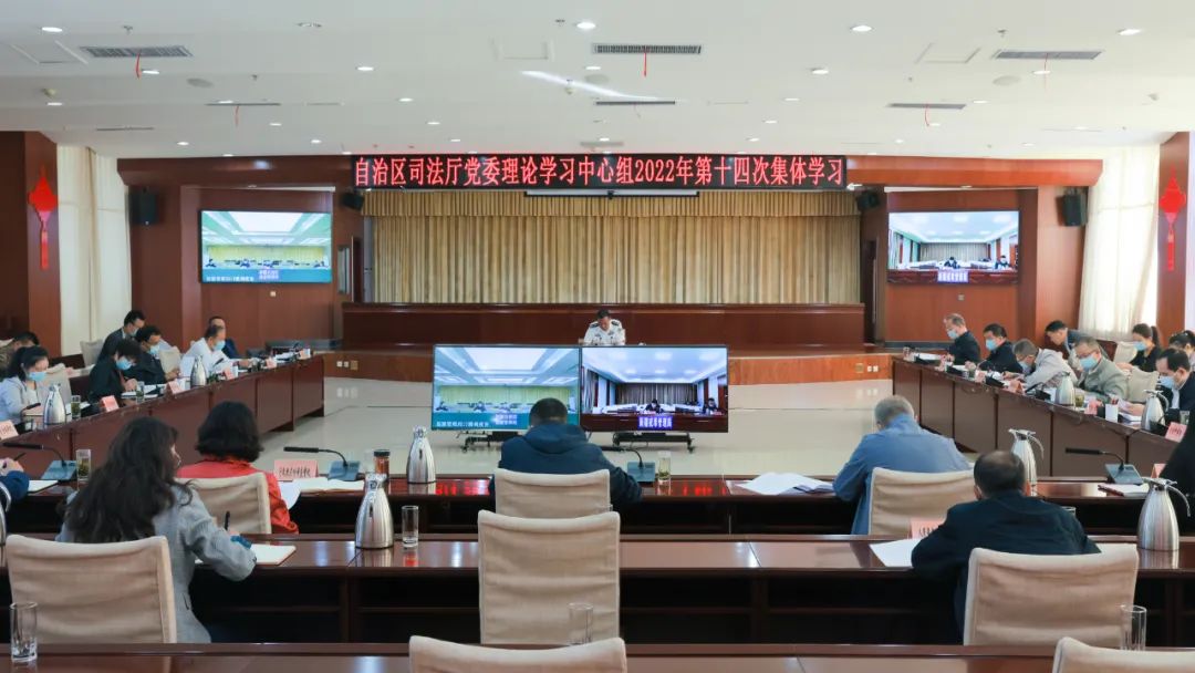 新疆平安網訊 2022年9月16日上午,自治區司法廳舉行黨委理論學習中心組2022年第十四次集體學習,深入學習領會習近平總書記在省部級主要領導干部專題研討班上的重要講話精神,以馬克思主義中國化時代化最新成果為指導,深刻領悟“兩個確立”,堅定不移推進中國式現代化,以法治建設和司法行政工作高質量發展實際成效迎接黨的二十大勝利召開。