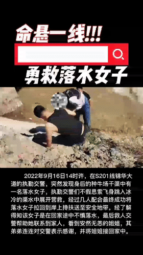 9月16日14時,昌吉回族自治州呼圖壁縣公安局交警大隊民警在S201線錦華大道執勤時發現,種牛場干渠渠水中有一名女子臉面向渠水,身體下沉,被水沖向下游。