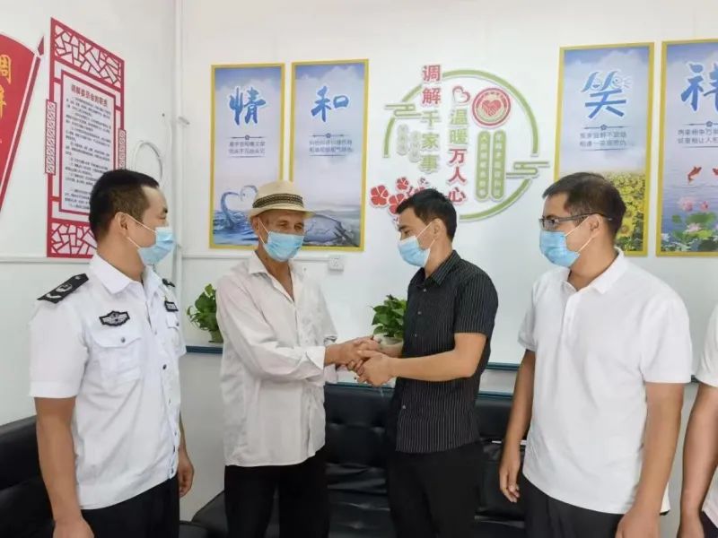 7月中旬,于田縣托格日尕孜鄉托格日尕孜村村民在人民調解員和司法干警的調解下握手言和。通訊員 孫興隆 攝