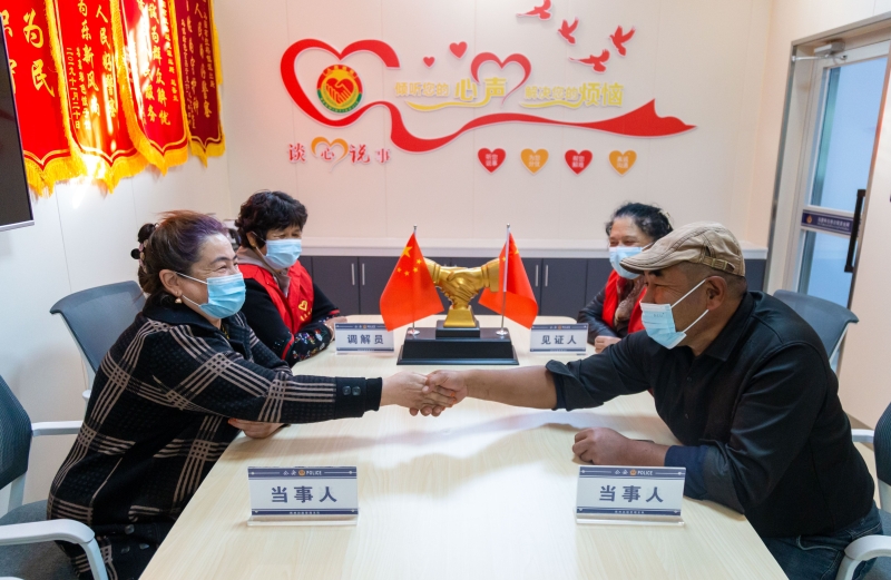 10月5日,在新疆出入境邊防檢查總站博州邊境管理支隊(duì)博樂邊境管理大隊(duì)烏圖布拉格邊境派出所“花兒楓警”工作站,一名群眾“點(diǎn)單”,選擇義警調(diào)解糾紛。