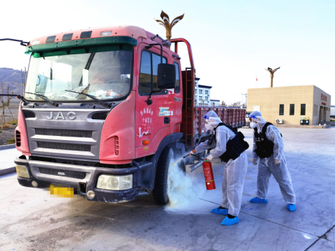“貨車停在檢查站附近的休息區,我在遠處就看到了濃煙。”石乾昌回憶說,為避免發生事故,他和同事一起用滅火器對貨車起火部位猛噴,另一組人則及時疏散周圍群眾,確保安全。10分鐘后,火被撲滅。(石榴云/新疆法制報)