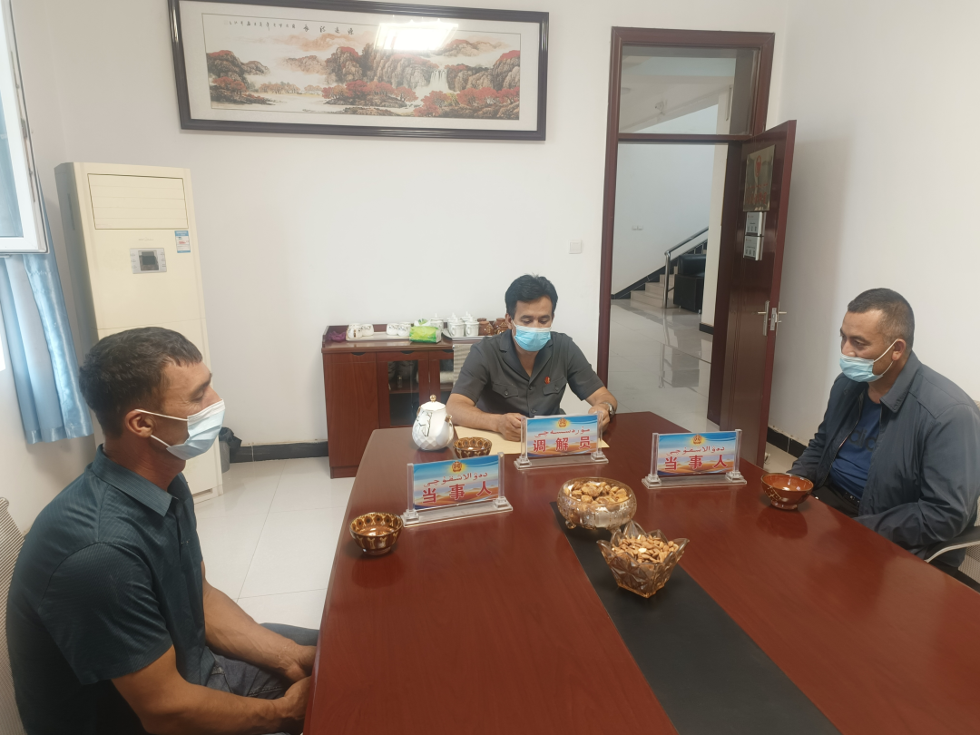調解過程中,吐爾遜江·阿吾提仔細研究案情,站在雙方的角度反復研討并修改調解方案,引導當事人誠實守信。正式調解當天,吐爾遜江·阿吾提邀請當地有威望的村民來到服務鄉村產業振興調解室參與調解,法官講法,村民講情,雙方將情與法相融合,制定出了調解方案。通過不懈努力,終于促使木某與阿某等人達成了調解協議,木某當即支付工資78000余元。