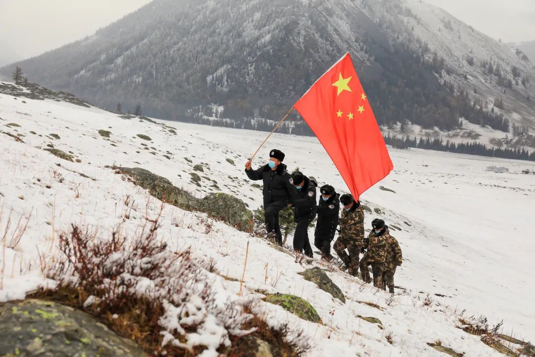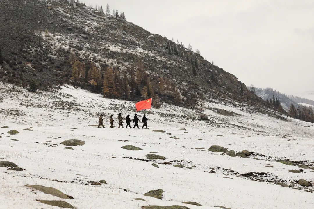 10月17日至18日,阿勒泰地區普遍降雪,部分邊境山區中到大雪。為保障邊境安全,新疆出入境邊防檢查總站阿勒泰邊境管理支隊富蘊大隊組織民警和護邊員前往中蒙邊境前沿開展巡邊踏查工作。民警和護邊員翻雪山、跨冰河、越達坂,守護著邊境前沿的安全穩定。(李銘驥)