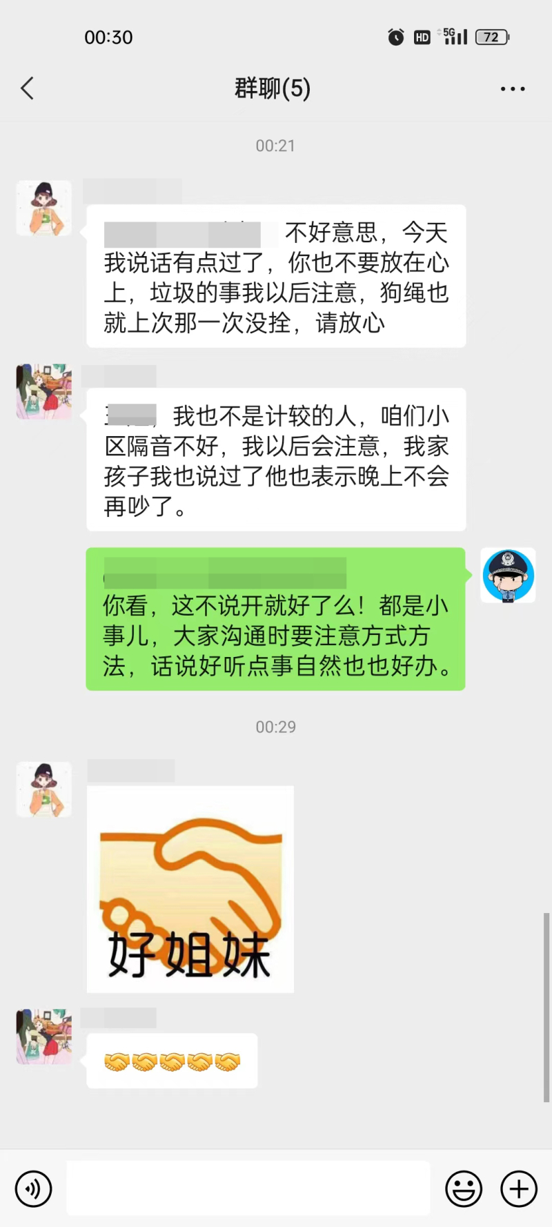 10月13日晚,兩位鄰居因孩子吵鬧聲太大起了爭執,庫爾勒市公安局建設路派出所臨時組建線上調解室微信群,對雙方開展調解。民警張良青先批評教育孩子家長,然后發送有關噪音擾民的法律法規鏈接……很快,雙方在線和解。