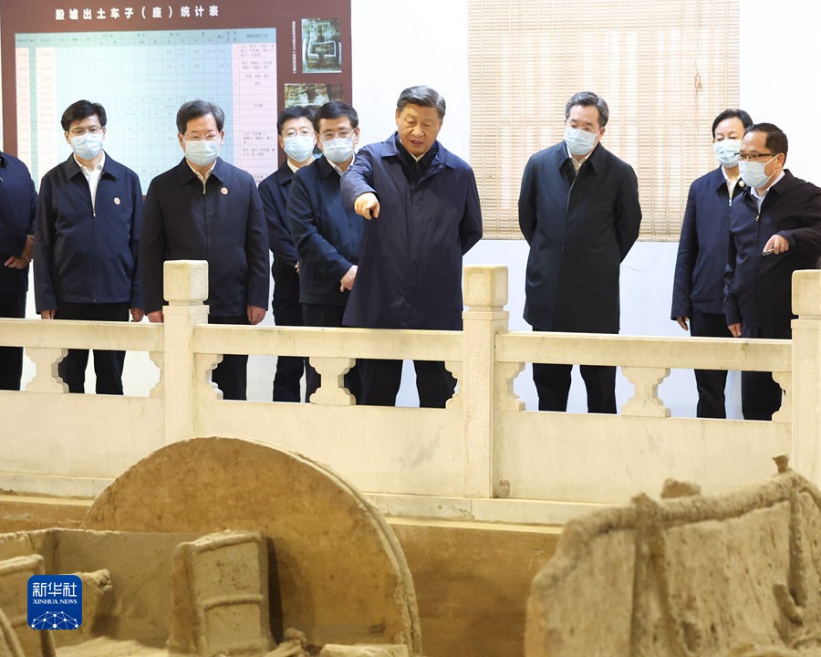 28日下午,習(xí)近平考察了位于安陽市西北郊洹河南北兩岸的殷墟遺址。殷墟是我國歷史上第一個文獻(xiàn)可考、為考古發(fā)掘所證實(shí)的商代晚期都城遺址。習(xí)近平步入殷墟博物館,仔細(xì)觀摩青銅器、玉器、甲骨文等出土文物。隨后,習(xí)近平來到車馬坑展廳,察看商代畜力車實(shí)物標(biāo)本和道路遺跡。他指出,殷墟出土的甲骨文為我們保存3000年前的文字,把中國信史向上推進(jìn)了約1000年。殷墟我向往已久,這次來是想更深地學(xué)習(xí)理解中華文明,古為今用,為更好建設(shè)中華民族現(xiàn)代文明提供借鑒。中國的漢文字非常了不起,中華民族的形成和發(fā)展離不開漢文字的維系。在這方面,考古事業(yè)居功至偉。考古工作要繼續(xù)重視和加強(qiáng),繼續(xù)深化中華文明探源工程。中華文明源遠(yuǎn)流長,從未中斷,塑造了我們偉大的民族,這個民族還會偉大下去的。要通過文物發(fā)掘、研究保護(hù)工作,更好地傳承優(yōu)秀傳統(tǒng)文化。習(xí)近平強(qiáng)調(diào),中華優(yōu)秀傳統(tǒng)文化是我們黨創(chuàng)新理論的“根”,我們推進(jìn)馬克思主義中國化時代化的根本途徑是“兩個結(jié)合”。我們要堅(jiān)定文化自信,增強(qiáng)做中國人的自信心和自豪感。