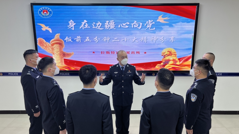 近日,該所組織民警開展“身在邊疆心向黨”活動,利用每天開飯前的五分鐘,結合自己的理解和體會交流學習黨的二十大心得。