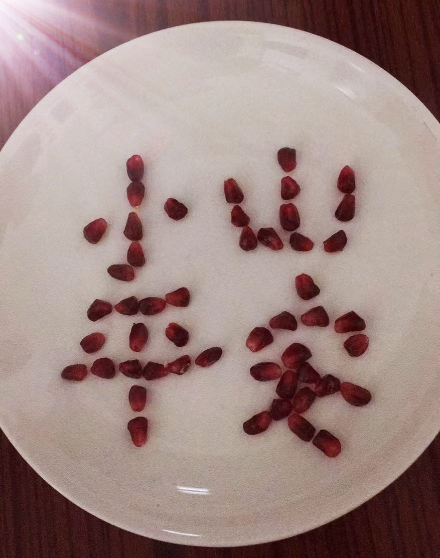 11月5日中午,侯小珊收到了女兒發來的一張微信圖片,女兒用石榴籽擺出了“小山(珊)平安”四個字。看到這幅圖,侯小珊潸然淚下,“平安是我們共同的心愿,相信只要我們心往一處想、勁往一處使,一定能夠克服一切困難。期待戰疫勝利的那一天!”