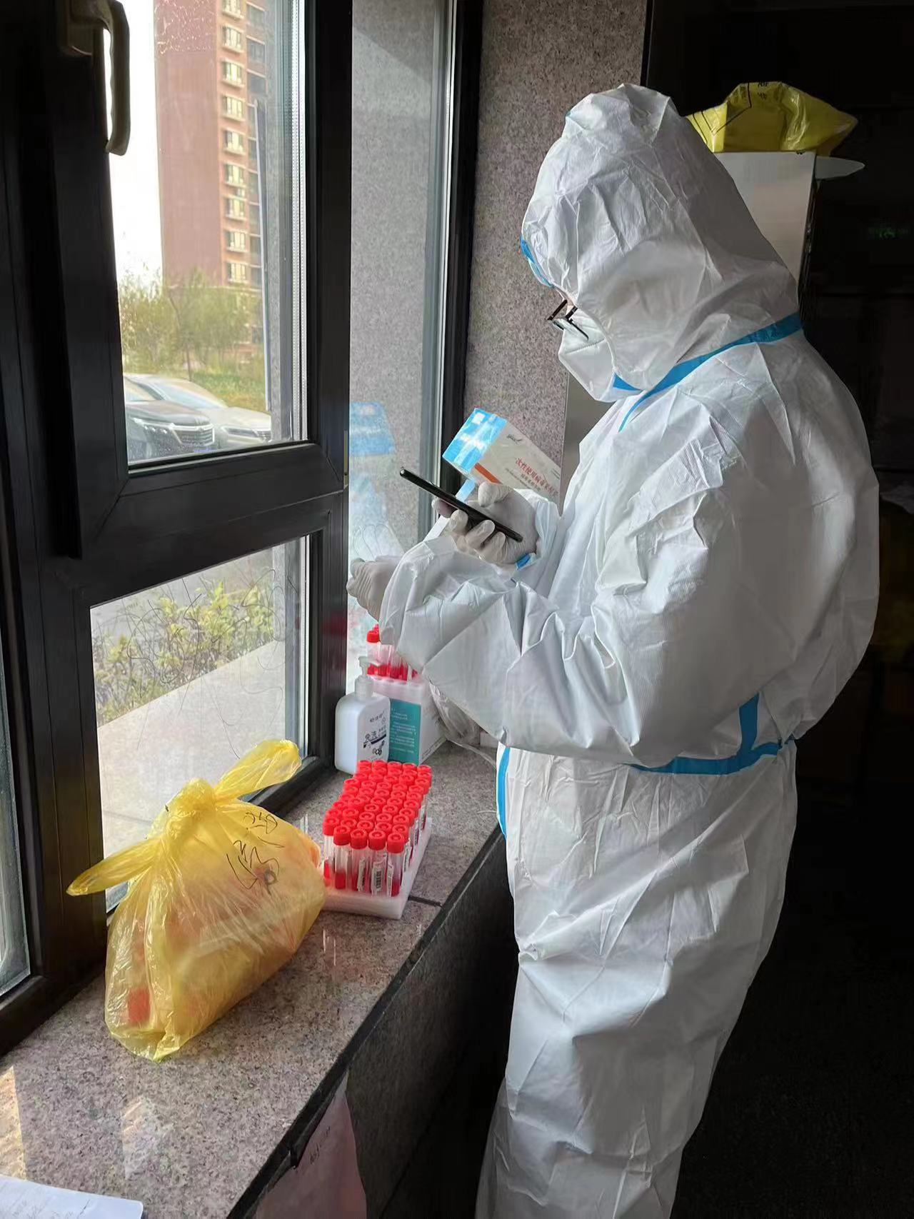 按照要求,每天10時30分前要完成核酸樣本采集、裝箱工作,時間緊任務重,為按時完成采集任務,他和搭檔早上7時許就開始做準備工作,采集70戶160人的核酸樣本。下午,挨家挨戶為居民發放抗原檢測試劑,監督居民認真開展自測。