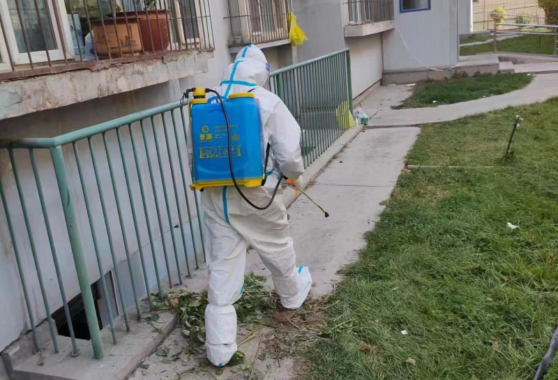 整棟樓內的消殺需要5桶消毒液,他每天背著20多公斤的消殺噴霧器樓上樓下要跑三趟,每次消殺后汗水都會浸透衣服。他調侃道:“消殺就當健身啦!”