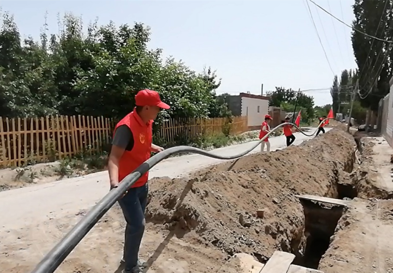 經(jīng)協(xié)調(diào),5月初,阿克蘇市檢察院“紅蘋果”志愿服務(wù)隊組織村里的黨員、團員和青年志愿者,扛著鐵鍬、鎬頭等工具,挖溝、更換自來水管。一周后,工程完工,村民生活用水問題徹底解決。