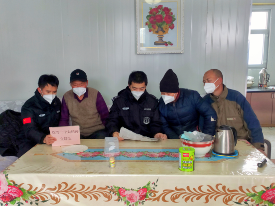 水磨溝鄉派出所所長曾繁杰與胡瑪爾別克坐在一起,用通俗易懂的語言向他宣講黨的二十大精神,一起聊著生產生活、醫療教育、衣食住行等方面翻天覆地的變化。