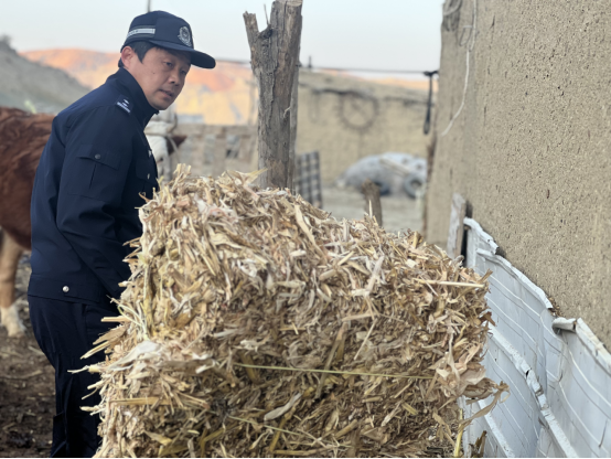 “我特別擔心草料的問題,沒想到‘牛羊警察’一天就解決了。”牧民賽力江·加合買提說。10月10日,因家中草料告罄,賽力江向張成剛求助,張成剛當天便聯合社區協調購來草料300余垛。卸草料時,賽力江隨口說了句“周邊30余戶牧民草料儲備都不足”,張成剛記在了心里,隨即開展摸排,協調購買草料。10月底,5000余垛草料送至各牧民家中。