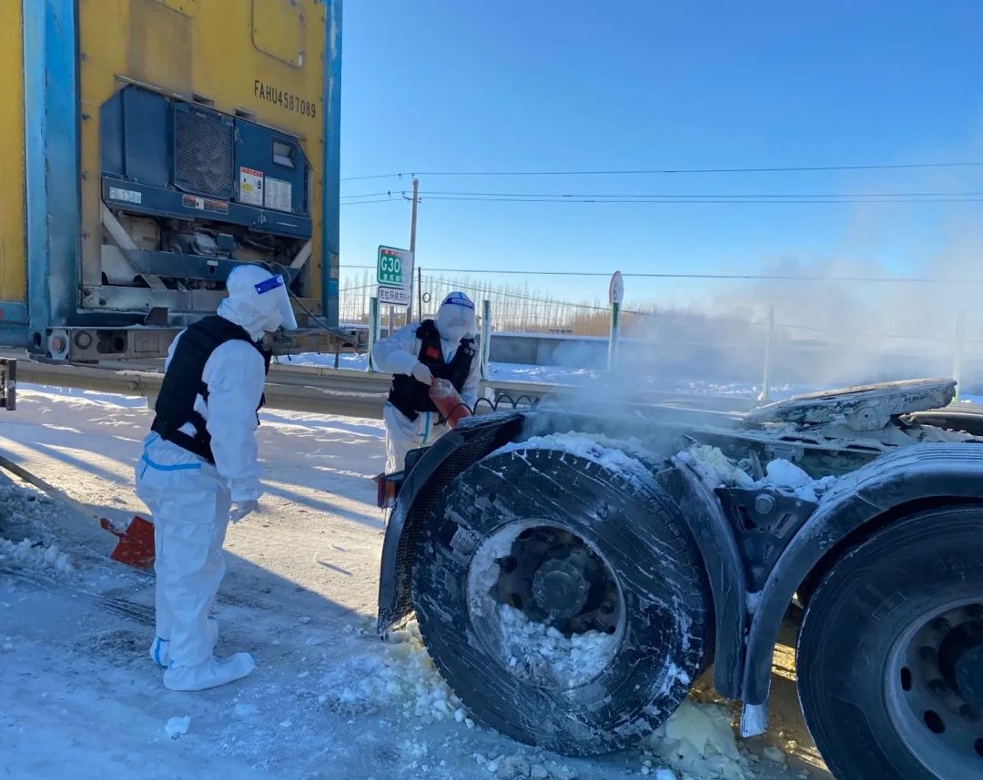 11月28日,塔城地區(qū)塔城市克塔高速公路路口,一輛滿載價值20萬元的水果大貨車突然輪胎自燃。接到報警后,巴克圖口岸邊境派出所民警立即出警趕往事發(fā)地點。