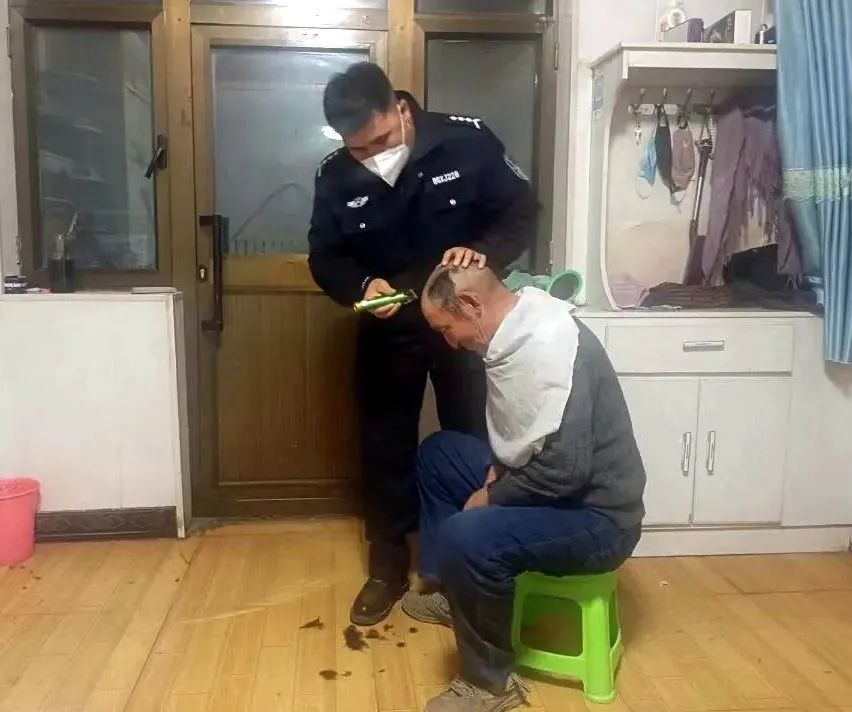 “大爺,我看您的頭發有點長了,一會我們過來幫您把頭發理理吧!”巴里坤哈薩克自治縣公安局花園派出所頭道河子村警務室警務人員在日常走訪中發現,有一部分行動不便的老人頭發長了,轄區沒有理發店,去城區理發又路途不便。警務人員看到老人們為此煩惱,便主動提出為他們上門免費理發。隨后,警務人員攜帶理發工具前往老人的家中,不一會兒,老人原本凌亂的頭發變得干凈整齊。