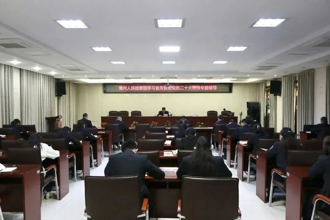 新疆平安網(wǎng)訊 近日,博爾塔拉蒙古自治州檢察機關(guān)召開學(xué)習(xí)宣傳貫徹黨的二十大精神專題輔導(dǎo)會,博州人民檢察院黨組副書記、檢察長厲海明結(jié)合自身學(xué)習(xí)感悟,以《深入學(xué)習(xí)宣傳貫徹黨的二十大精神,把忠誠擁護“兩個確立”、堅決做到“兩個維護”落實到檢察工作各方面全過程》為題,圍繞博州檢察機關(guān)如何深入學(xué)習(xí)宣傳貫徹落實黨的二十大精神,為全州檢察干警作黨的二十大精神專題學(xué)習(xí)輔導(dǎo)。