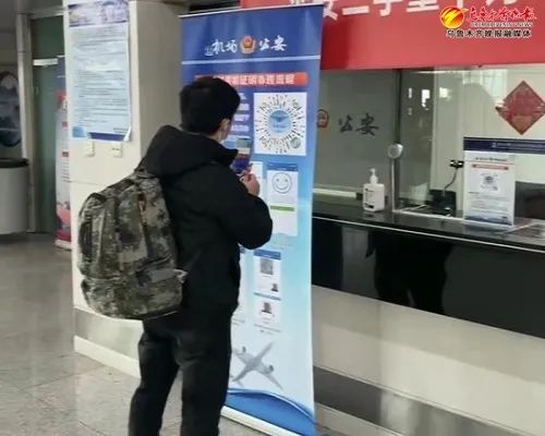 值班民警李鵬興一邊安撫他不要著急,一邊指向警務(wù)室窗前張貼的二維碼,幫助他掃碼,進(jìn)入小程序依次輸入個人信息、人臉識別等,不到一分鐘就完成數(shù)據(jù)讀取、圖像采集、身份驗(yàn)證、信息比對、證件辦理全套流程,直接辦理乘機(jī)手續(xù)。