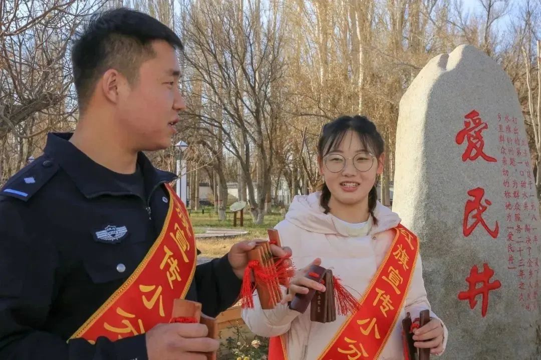 大家走近才發現,是新疆出入境邊防檢查總站哈密邊境管理支隊下馬崖邊境派出所民警和鄉政府干部在唱快板兒。“江山是人民,人民是江山;邊疆雖遠心相近,黨把人民記心間;惠民舉措會更多,公共服務更健全……”