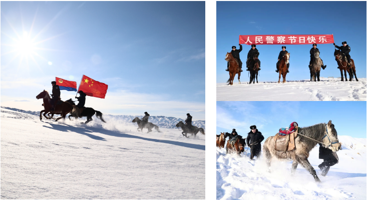 1月8日,在第三個“中國人民警察節”來臨之際,新疆出入境邊防檢查總站阿勒泰邊境管理支隊恰勒什海邊境派出所民輔警們深入邊境前沿一線,翻雪山、越達坂,采取馬巡、步巡相結合的方式,用腳步丈量祖國邊境線,確保邊境安全穩定,以實際行動向“中國人民警察節”獻禮。(石曉坤)