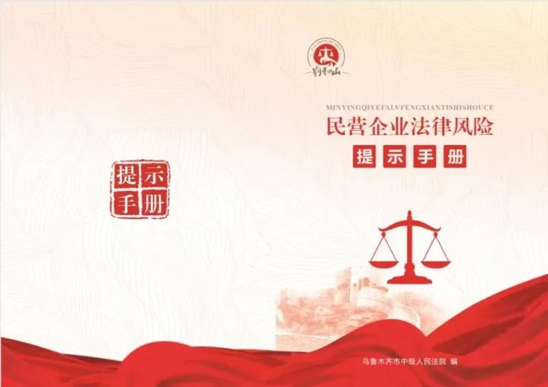 近日,烏魯木齊市中級人民法院立足審判實踐,以各審判庭涉企案例為基礎,聚集該院審判一線專家,結合企業司法需求,精心總結歸納民營企業在生產經營過程中,特別是在設立、經營、管理、訴訟等方面的66個法律風險點,編印成《民營企業法律風險提示手冊》。