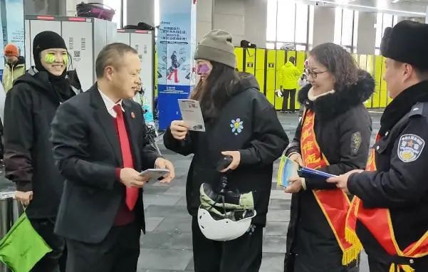 這個冬季,滑雪場格外熱鬧,寬闊的雪道上,三五成群的游客正在享受滑雪運(yùn)動帶來的樂趣。朱甲華朝著休息區(qū)走去,邊給游客們發(fā)名片,邊告訴他們:“如果遇到矛盾糾紛,第一時間聯(lián)系到我……”