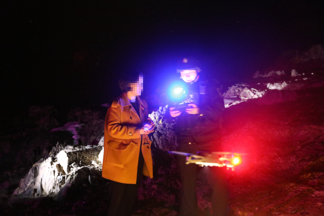 在民警上山尋找的同時(shí),歐江越取出裝有夜視儀的警用無(wú)人機(jī),不斷轉(zhuǎn)動(dòng)著攝像頭,在顯示屏上仔細(xì)尋找葉力江的身影。