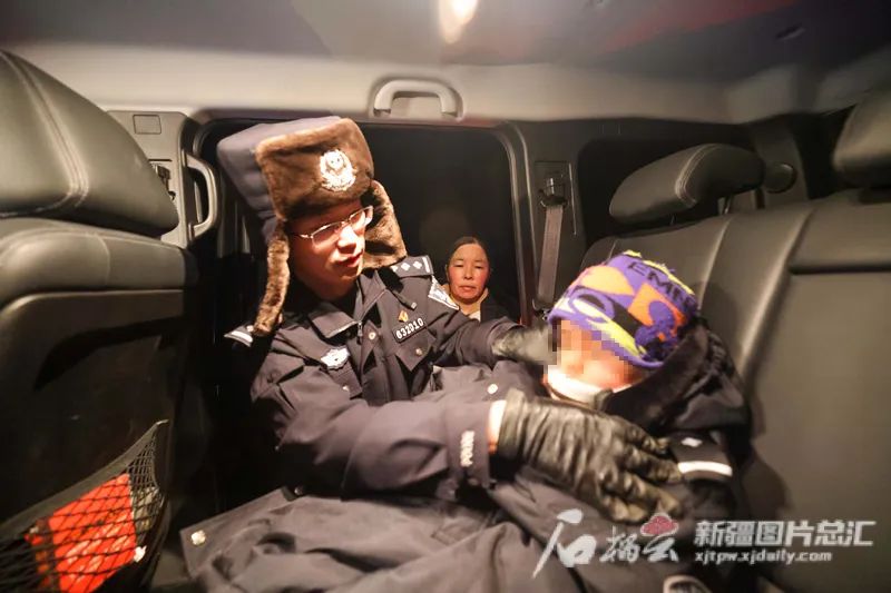 就在鏟車緊張開路的同時,庫爾特邊境派出所民警驅車到阿女士家,接上小加趕往市區方向。民警們一邊安撫小加,一邊用鐵鍬等工具一點點清理路上積雪,緩慢前行。為盡快將小加送到接應的警車上,在距離相聚點還有2公里的地方,民警吐爾遜江·吐達昆用大衣裹住小加,抱著孩子蹚雪往前沖。