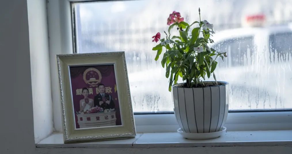 他們還托人從山下制作了一條橫幅,“奮斗在最年輕的時光,奉獻在最偏遠的邊疆”,就懸掛在警務站柵欄上最顯眼的位置,以此來時時鼓勵自己。每個人還將自己與家人的合影洗成照片,裝上相框放在床頭,為這亙古苦寒的邊境增添了暖意。