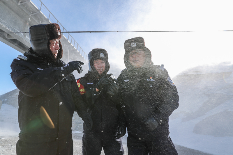 “還有一個防風面罩,戴上!”副所長王紅強提醒民警馬曉康。這是馬曉康調至額敏站派出所第一次經歷大風天氣。
