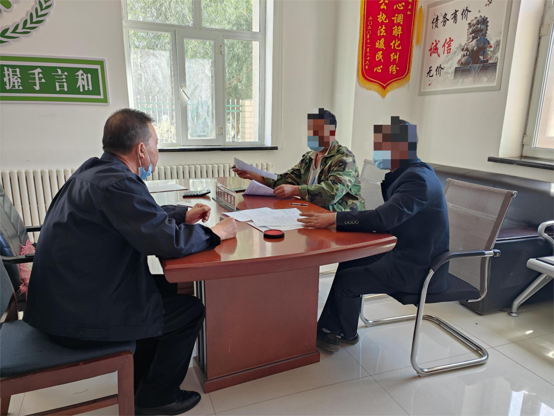 在阿勒泰地區青河縣“趙老師調解室”,負責人趙正接待了王某和劉某。在了解雙方的訴求后,趙正選準切入點,耐心釋法明理,最終促使兩人達成調解協議。