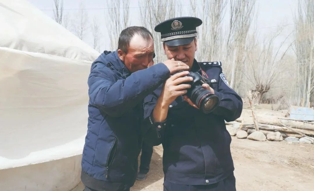 “終于把你們盼來了!我的身份證過期了,最近忙著轉場,沒時間去鄉里辦。”牧民玉努斯·吐拉提聞訊趕來。民警居馬巴依·玉努斯拿出小板凳,讓玉努斯坐好,擺好白布背景,調整玉努斯的坐姿和發型后,舉起相機拍照。幾分鐘后,信息采集完畢。