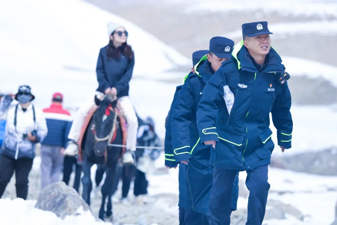 旅游高峰期時,全國各地慕名來到冰川公園游玩的游客絡繹不絕,孫中川和戰友們還要在景區往來巡邏,從慕士塔格峰腳下步行至海拔4866米的冰川約2公里,孫中川每天要往4至5趟。記者跟隨他走到一半,就感覺胸悶氣短、氣喘吁吁。